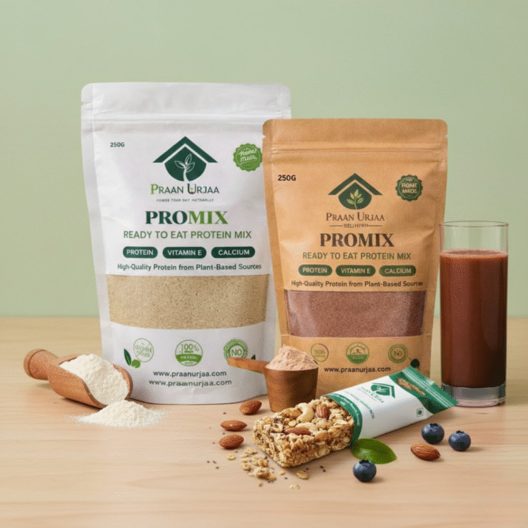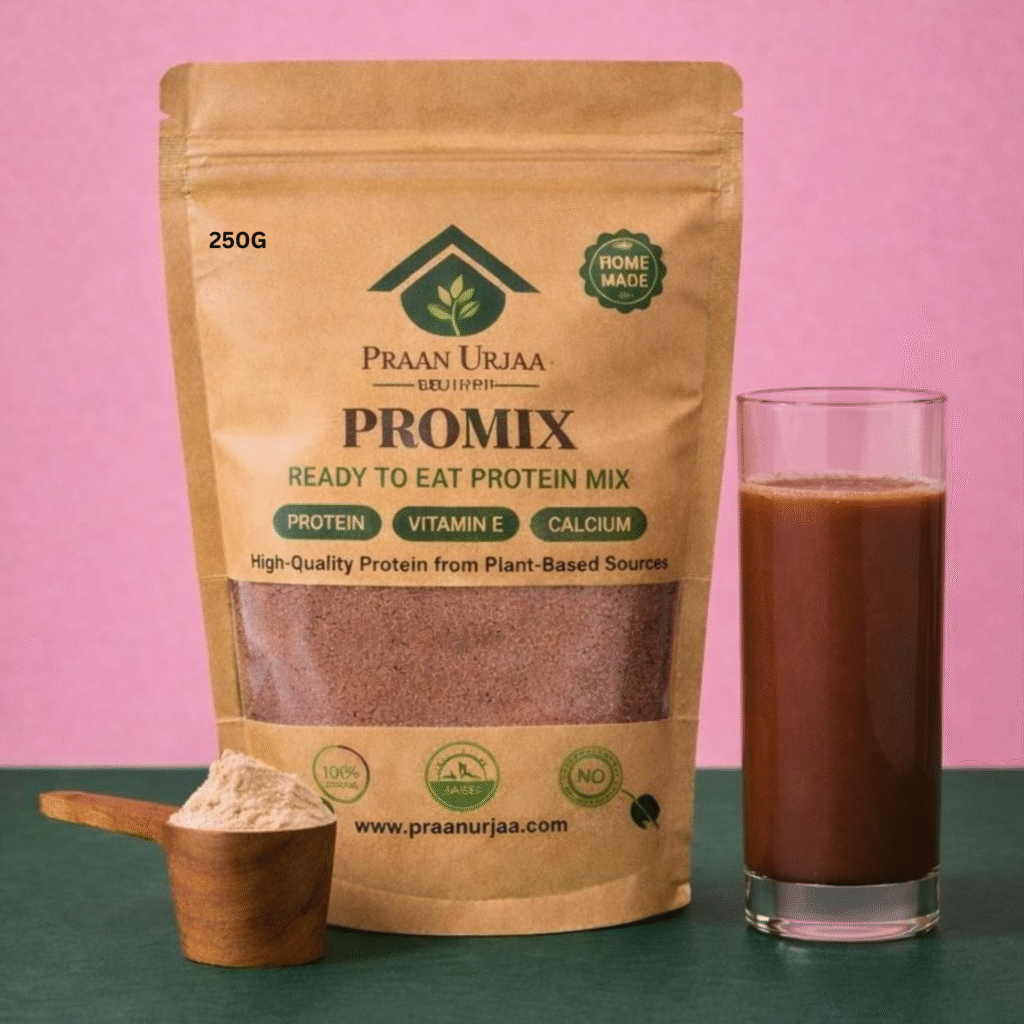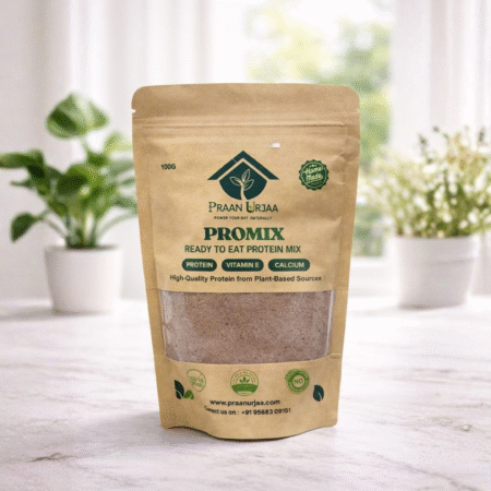 Just mix a scoop of Praan Urjaa plant-based protein powder with your smoothie, milk, or favorite drink and power up naturally.